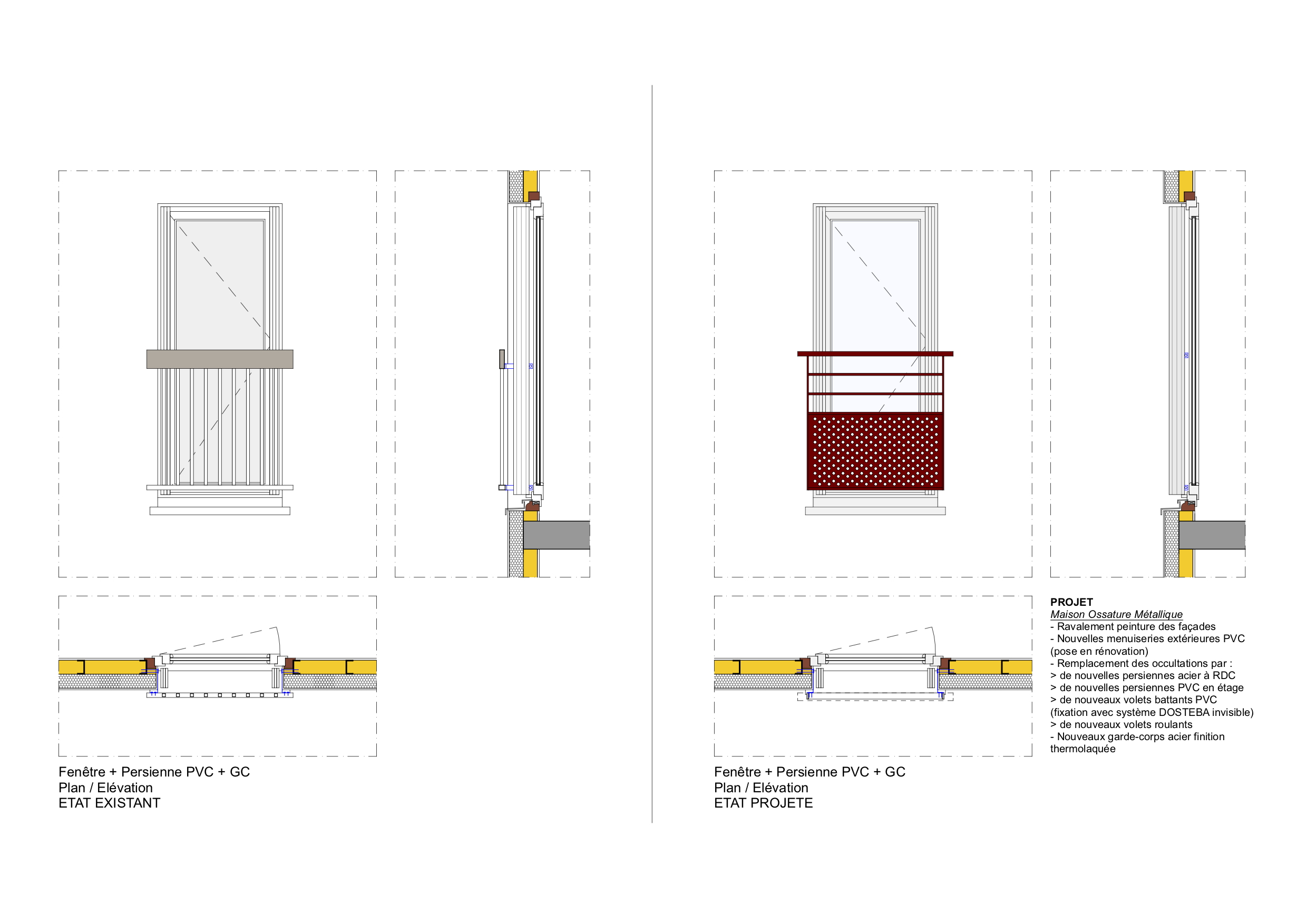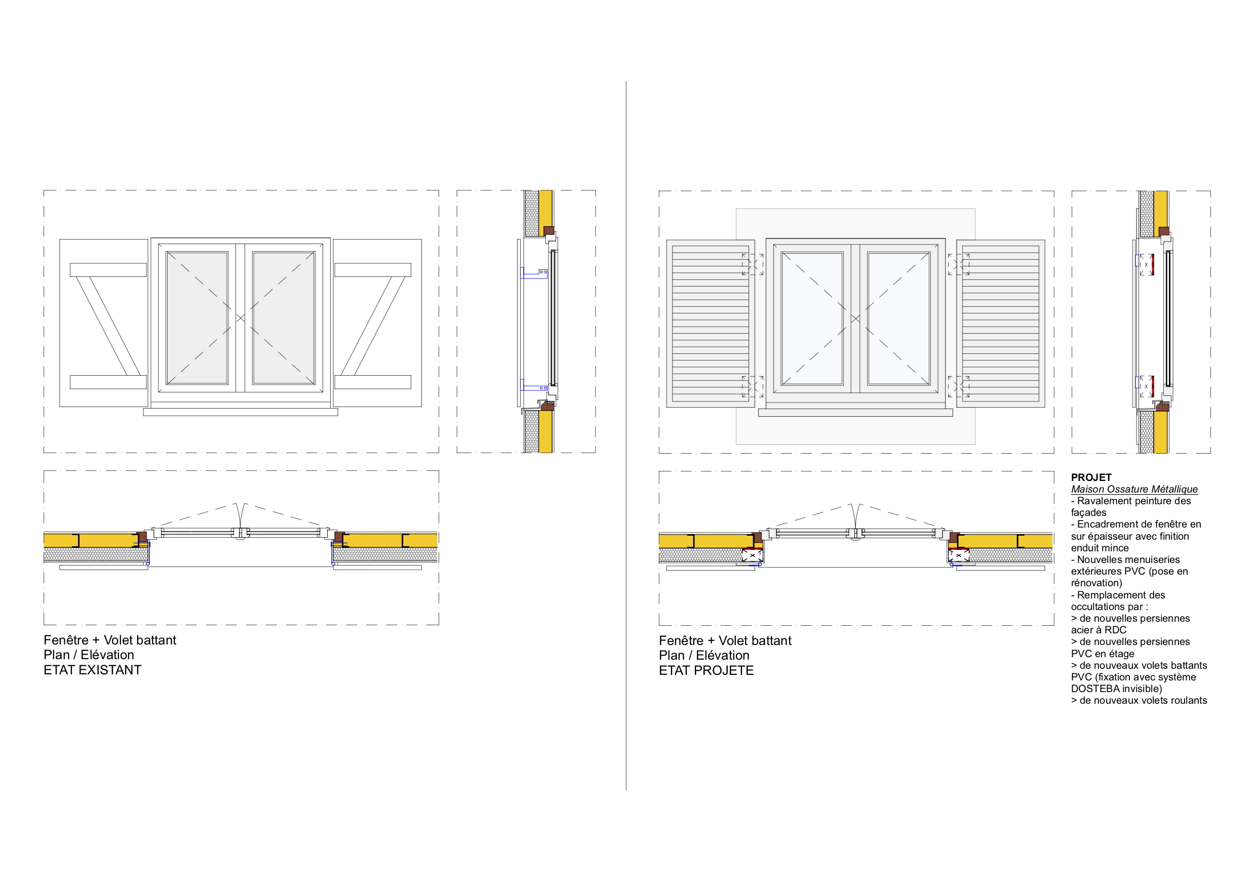 – Volets battants PVC remplacés dito existant (ton blanc / fixation avec système de type DOSTEBA invisible décrit ci- avant)