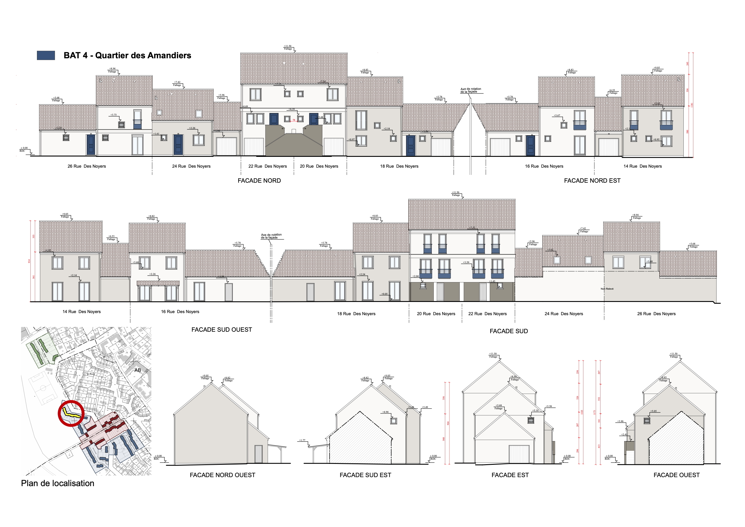 Les 88 logements sont principalement constitués de pavillons en bande, dont les gabarits varient de R+combles à R+2+combles, donnant lieu à des typologies variées.