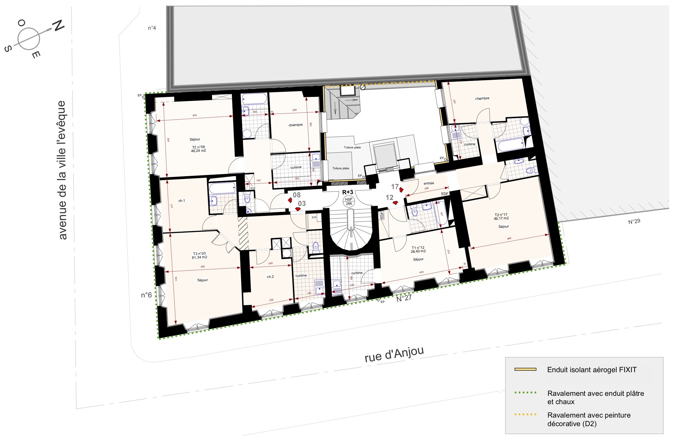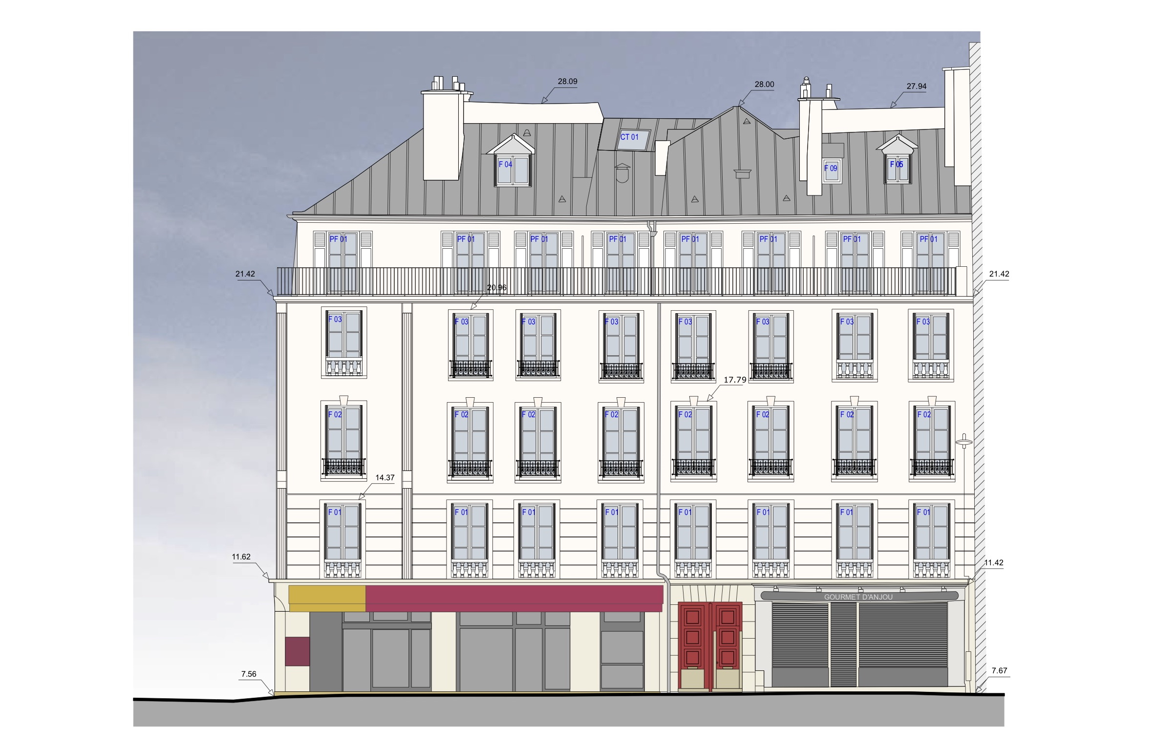 L’opération porte sur la réhabilitation en milieu occupé d’un immeuble d’habitation situé au 27 rue d’Anjou, dans le 8ème arrondissement.