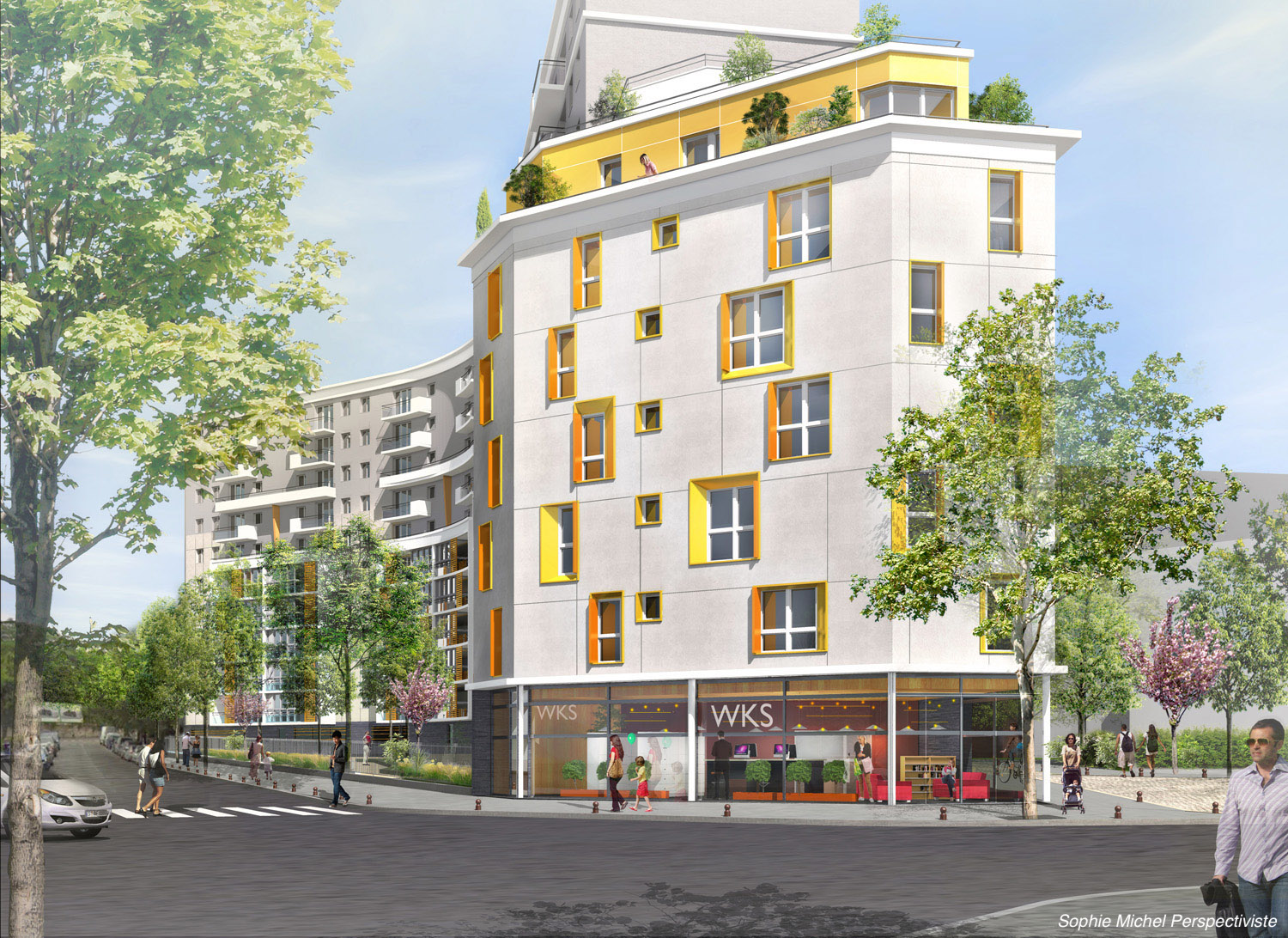 – En redonnant au bâtiment Chevaleret une nouvelle échelle, en séquençant les façades par la modélisation de « fenêtres urbaines », regroupant sur plusieurs niveaux les baies, les balcons et des vérandas à l’intérieur de « cadres » venant en saillies sur les murs de façades.